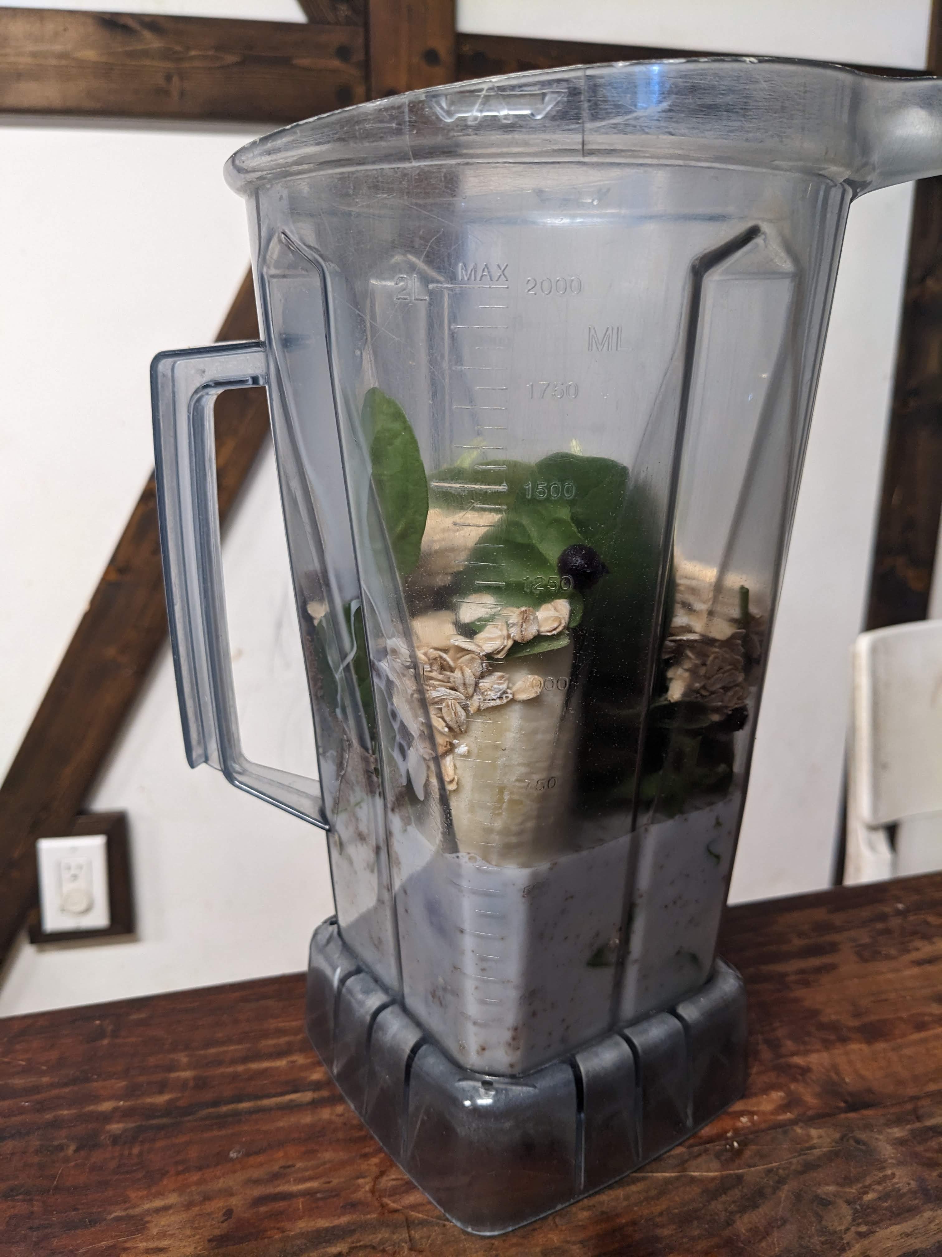 Blend until smooth. Best to drink immediately as the ground flax seed will gelatinize if you let it sit too long.